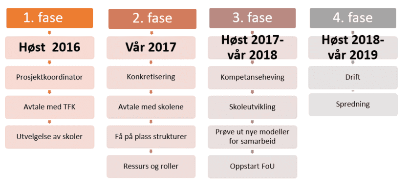 Høsten 2013 bestemte styringsgruppa at det var ønskelig å videreføre prosjektet i en fase 2 for perioden 01.01.14 – 31.12.17 med utvidelse til 8 skoler. Her var det en noe enklere søknadsprosess uten ekstern vurdering. Følgende nye skoler ble valgt: